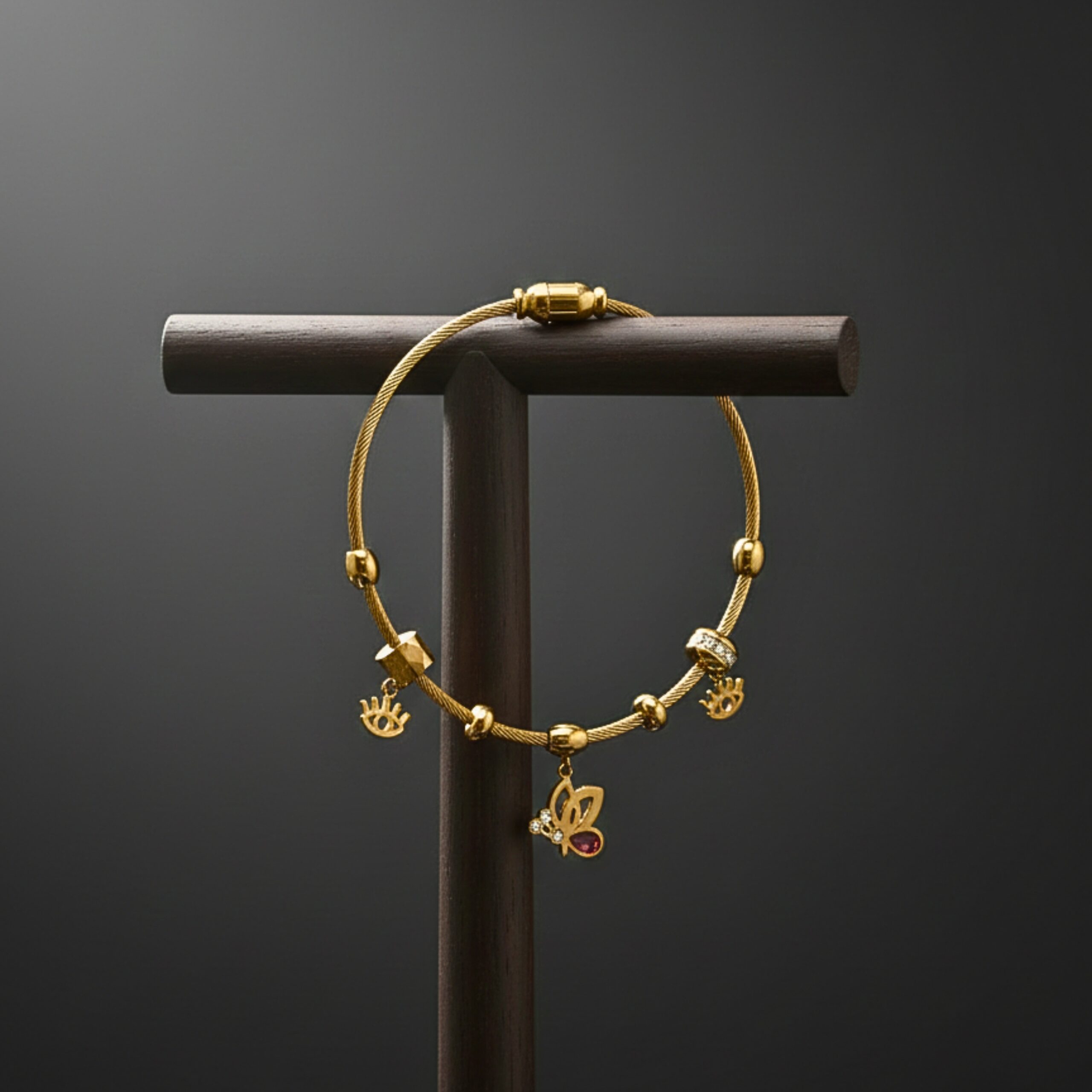This bangle is crafted from a high-quality alloy base, topped with a premium stainless steel anti-tarnish coating